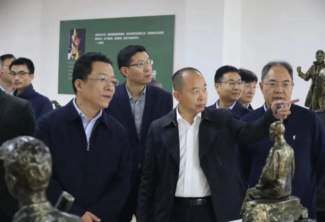 2020年11月21日上午,市委書記丁純等市領(lǐng)導(dǎo)到高新區(qū)銅官府文化創(chuàng)意股份公司新基地調(diào)研,這是繼今年4月26日之后,丁書記第二次調(diào)研銅官府。丁書記一行參觀了銅官府大師工作室和展廳,同時參觀了金星銅、大明銅匠生產(chǎn)基地。特別對正在裝飾的5000平方米徽式銅建筑提出期望。市委副書記趙振華,市委常委、常務(wù)副市長程雙林,市委常委、經(jīng)開區(qū)黨工委書記黃化峰,市委常委、樅陽縣委書記劉亞東等領(lǐng)導(dǎo)也一同參加了調(diào)研。