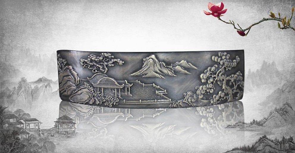 此幅青銅鑄造的《十八羅漢插屏》,是從一友人收藏的大約清中期紅木插屏上翻模制成的。整體上看玲瓏天成,布局精巧。從工藝上看雕法嫻熟,匠心獨(dú)具。特別是十八羅漢,個(gè)個(gè)活靈活現(xiàn)、栩栩如生。作者通過板塊錯(cuò)落的布局,使畫面生動(dòng)起來,產(chǎn)生了上乘的視覺效果。